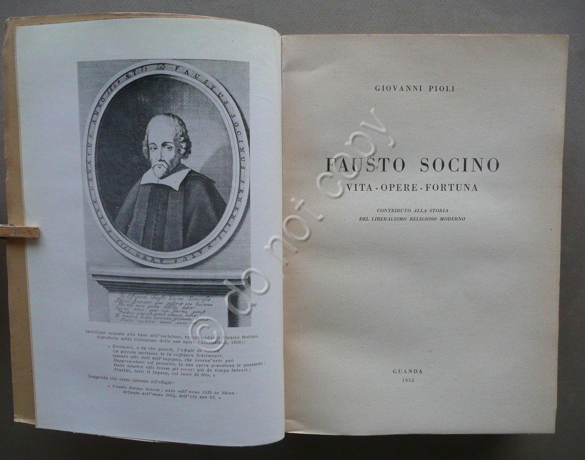 Fausto Socino Vita Opere Fortuna Giovanni Pioli Guanda 1952 Fascetta Editoriale