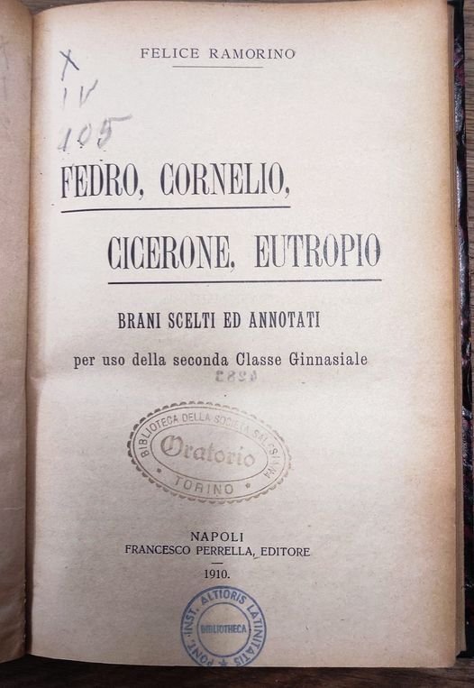 Fedro, Cornelio, Cicerone, Eutropio : brani scelti ed annotati per uso della seconda classe ginnasiale | Libri antichi e moderni | Ramorino, Felice, ,Ramorino, Felice
