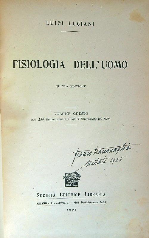 Fisiologia dell'uomo 5 voll. | Libri antichi e moderni | Luciani, Luigi