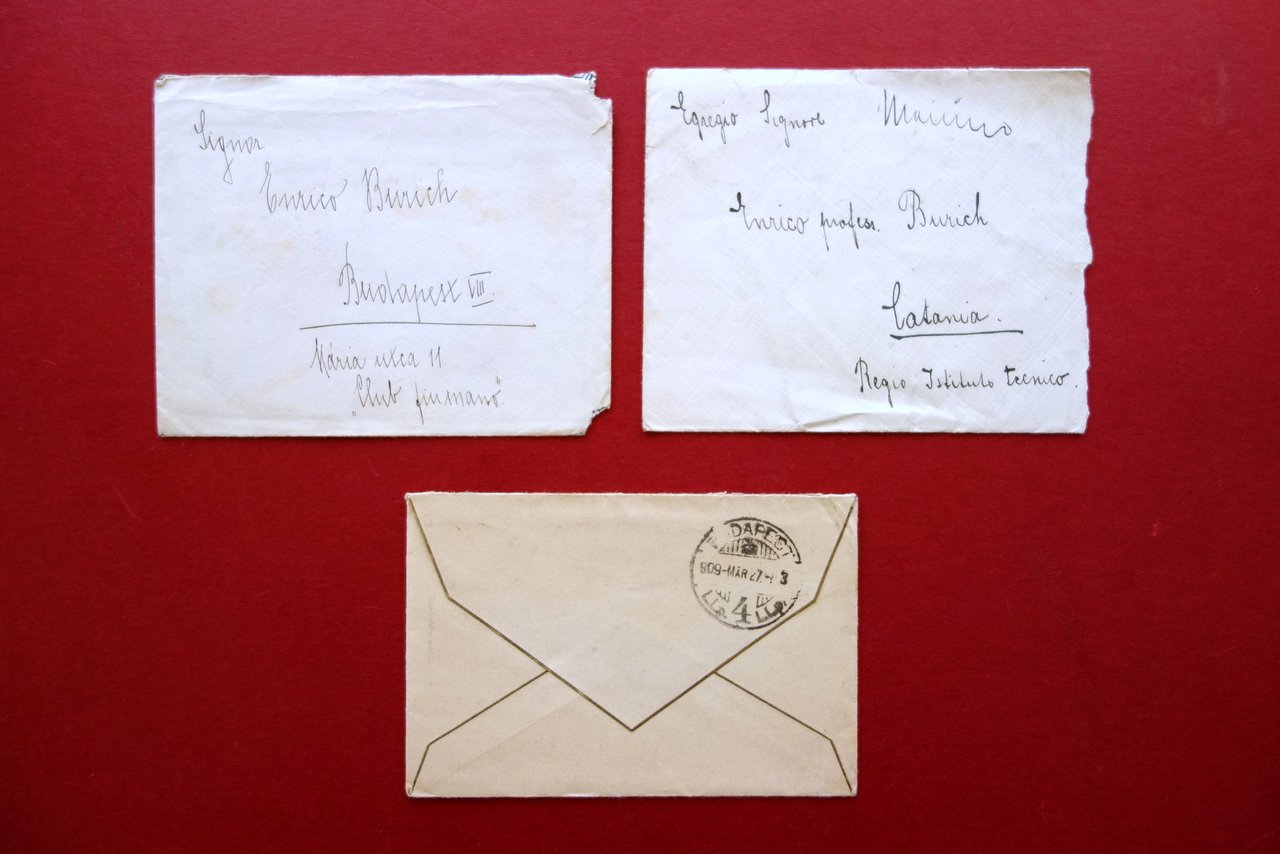 Tre affrancature, Fiume tre affrancature postali su altrettante buste da lettera 1916-1917 1916-17; tre affrancature postali su altrettante buste per lettere. Cm circa 9,5x12. Condizioni di conservazione Buste tutte e tre in condizioni pi√π che discrete con alcuni lievi aloni e leggere tracce di sporco, aperte e con piccoli difetti dovuti all'estrazione delle missive, ora mancanti. Retro di una busta con mancanza (vedi foto). SC03.D16342 N
