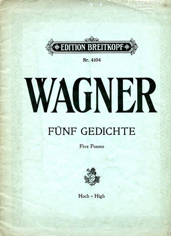 Five Poems (Funf Gedichte) Edition Breitkopf | Libri antichi e moderni | Wagner, Richard & Newman, Ernest