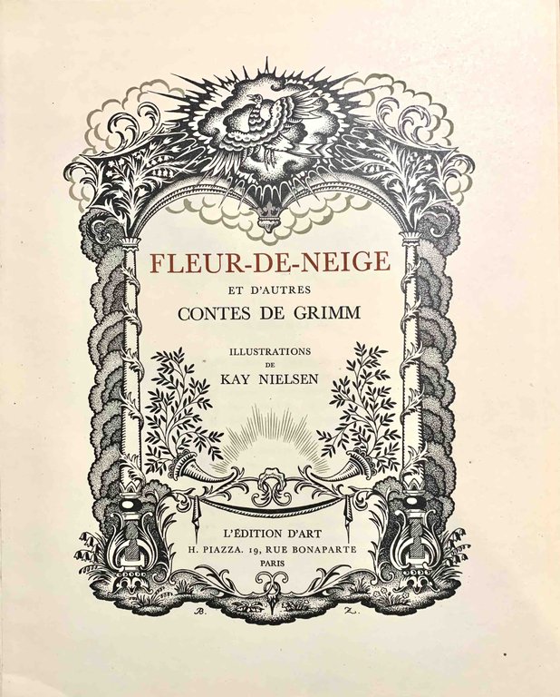 30 cm in 4°, brossura editoriale protetta da velina con titolo e illustrazione di Kay Nielsen al piatto e titolo al dorso. P. 117, (3), con 12 tavole illustrate da Kay Nielsen a colori applicate e protette da veline parlanti, e ornamentazioni grafiche a cura di Pierre Courtois, tiratura limitata di 2400 esemplari, il nostro n° 1451. Volume delicato in quanto ancora nella sua brossura originale, ma ottimamente conservato.