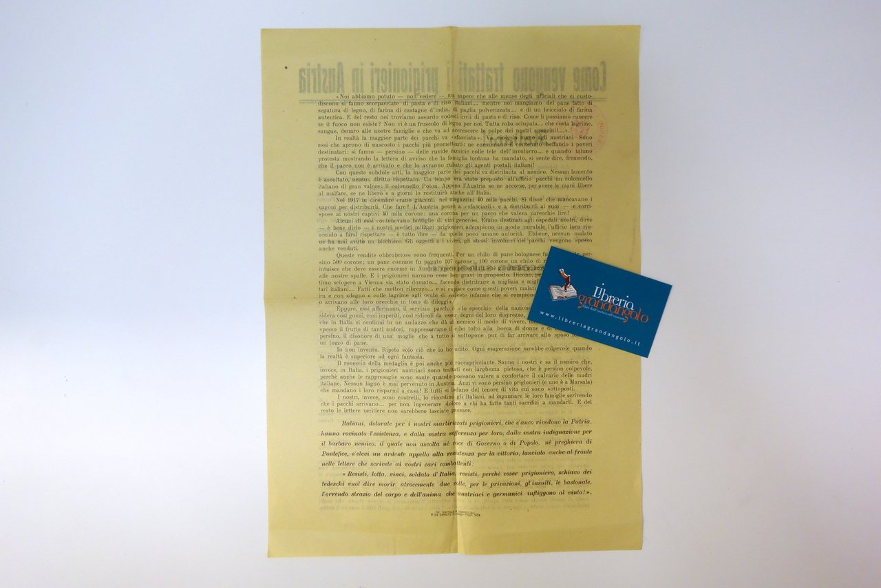 Foglio Volante Come Vengono Trattati i Prigionieri in Austria WW1 1918 Raro | Libri antichi e moderni |