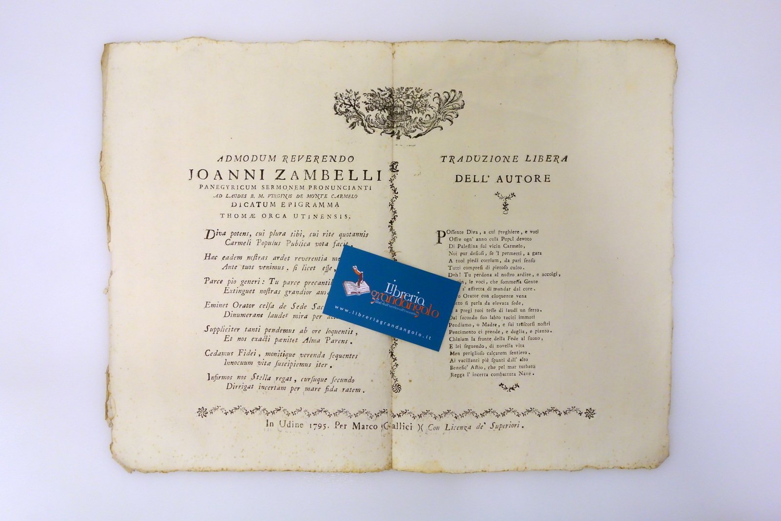 Foglio Volante Sonetto G. Zambelli Monte Carmelo Gallici Udine 1795 | Libri antichi e moderni |