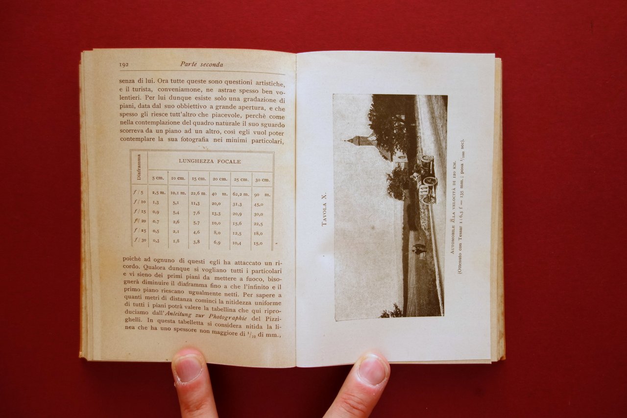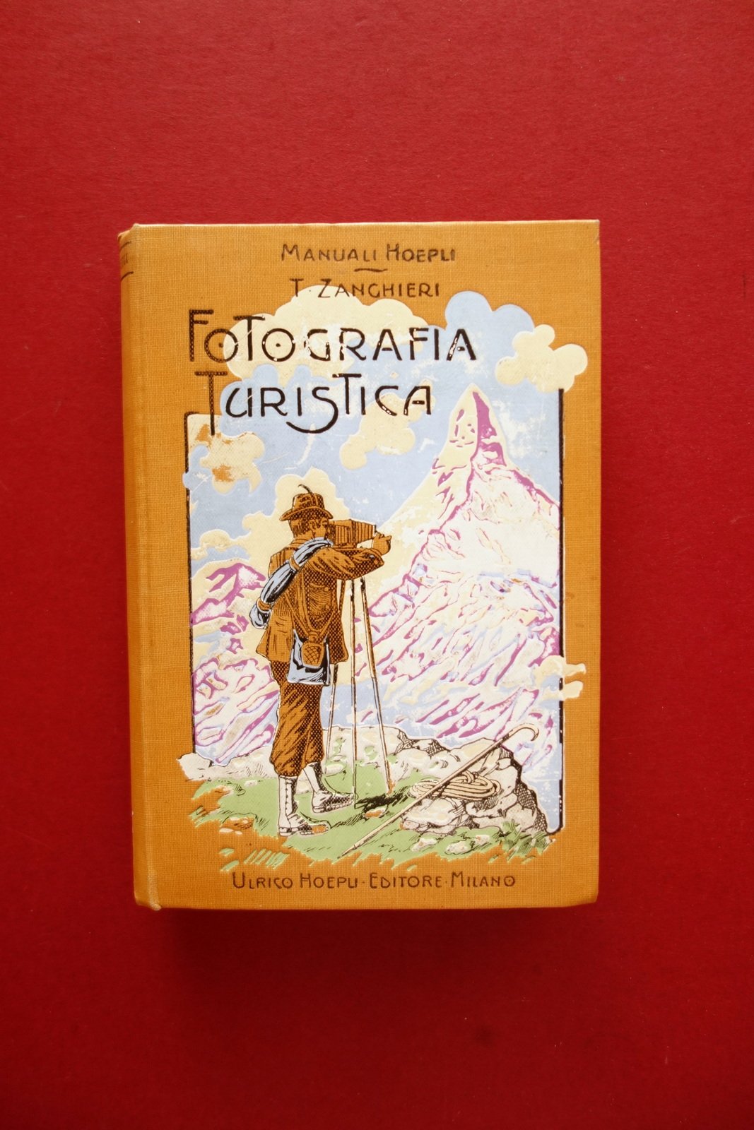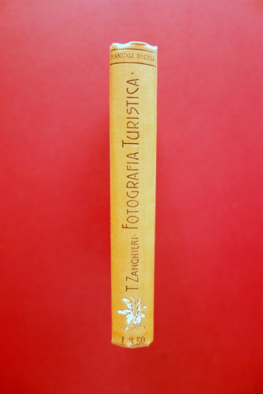 Dott. T. Zanghieri, † Fotografia Turistica con 84 incisioni e 18 tavole Hoepli, Milano 1908; cm 15x10; pp. XVI-280 con 84 fig. in b/n, pi˘ 18 tavv. in b/n fuori t.; tutta tela ed. ill. a colori. † Condizioni di conservazione Esemplare in condizioni pi˘ che buone con tracce d'uso; coperta con†qualche piccolo leggerissimo alone; taglio ant. e inf. con alcune piccole lievi abrasioni. Interni buoni. † Rara prima edizione del 1908. † SETT157.L21028 N P