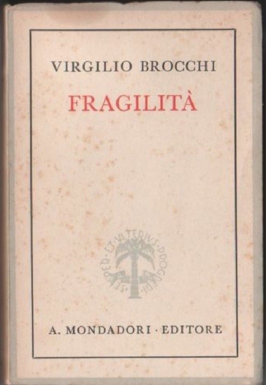 Fragilità - Brocchi VirgilioMondadori - 1941.Brossura - 13x19.5 cm - 301 pp.Brossura editoriale; firma d'appartenenza all'anteporta; fioriture;normali segni del tempo buono stato.