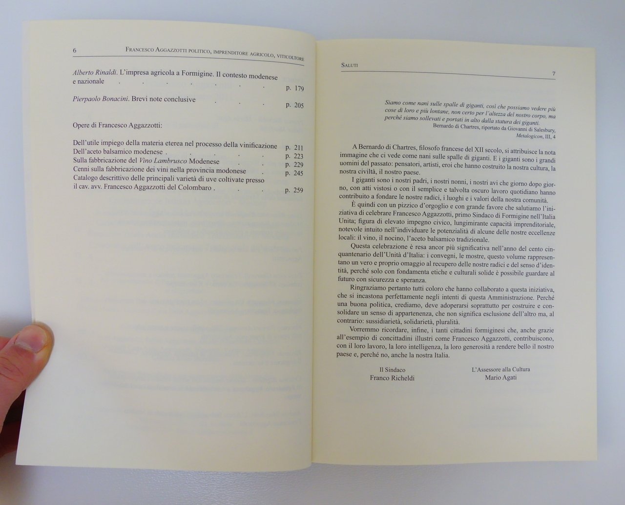 FRANCESCO AGAZZOTTI SINDACO DI FORMIGINE LAMBRUSCO ACETO BALSAMICO FANGAREZZI | Libri antichi e moderni |