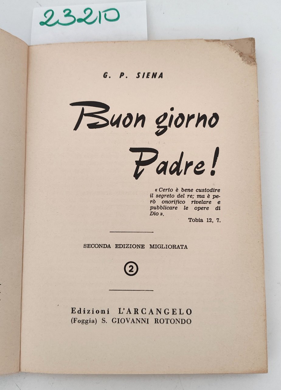 G. P. Siena Buongiorno padre i fatti di Padre Pio n. 2 L'Arcangelo 2° ed. 1965 | Libri antichi e moderni | Giovanni Siena