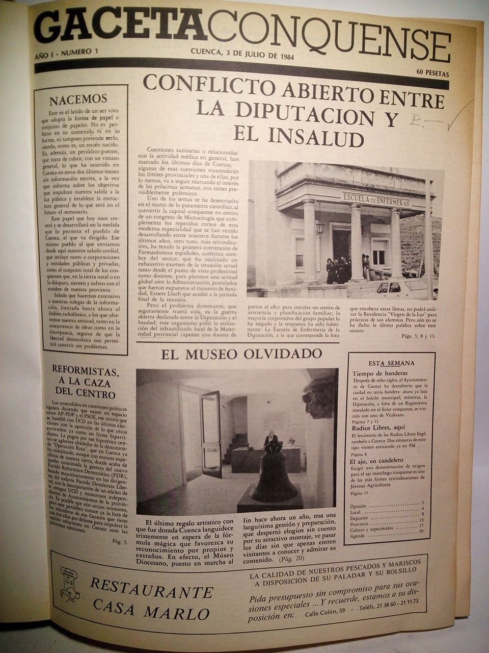 Gaceta Conquense: Año I. Nº 1 (3 de Julio de 1984) a Año I. Nº 27 (29 de Diciembre al 4 de Enero de 1985)