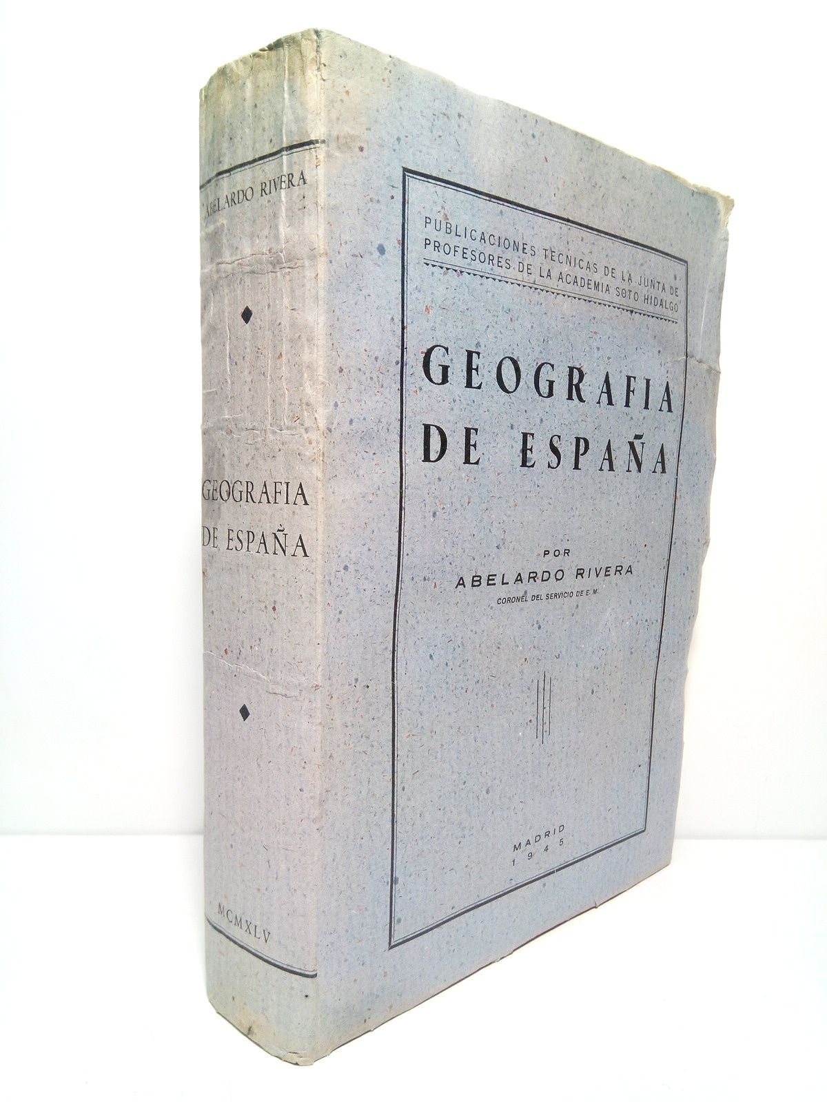 Madrid: Academia Soto Hidalgo, publica (Imp. de los Talleres Penitenciarios de Alcalá de Henares), 1945.- 610 p.: Láminas, ilustraciones, mapas y estados; 4º (24 x 17 cm); Rústica Ed.- (Publs. Técnicas de la Junta de Profesores de la Academia Soto Hidalgo).- Una geografía muy extensa y concienzudamente hecha.* Falto de la camisa, y las cubiertas con mínimos desperfectos normales del tiempo. GEOGRAFÍA DE ESPAÑA EN GENERAL E HISTORIA DE LA GEOGRAFÍA ESPAÑOLA