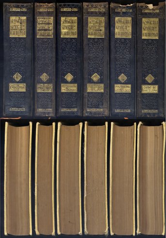 Geografia General de Catalunya. I: Catalunya. Per Francesc Carreras i Candi i la col·laboració de Lluís Marià Vidal i Carreras, Norbert Font i Sagué, Joan Cadevall i Diars, Emili Tarré i Tarré, Felip Ferrer i Vert, Josep Maria Bofill i Pichot, Eugeni Ferrer i Dalmau, Salvador Maluquer i Nicolau, Joan Baptista Aguilar-Amat i Banús, Baltasar Serradell i Planella, Marià Faura i Sans, Salvador Sanpere i Miquel, Frederic Rahola i Trèmols, Jaume Maspons i Camarasa, Ernest Moliné i Brasés, i Pere Estasen i Cortada; II: Província de Barcelona. Per Cels Gomis i Mestres; III: Província de Tarragona. Per Emili Morera i Llauradó; IV: Província de Lleida. Per Ceferí Rocafort i Sansó; V: Província de Girona. Per Joaquim Botet i Sisó, i VI: Ciutat de | Libri antichi e moderni | Carreras Candi, Francesch (Director).