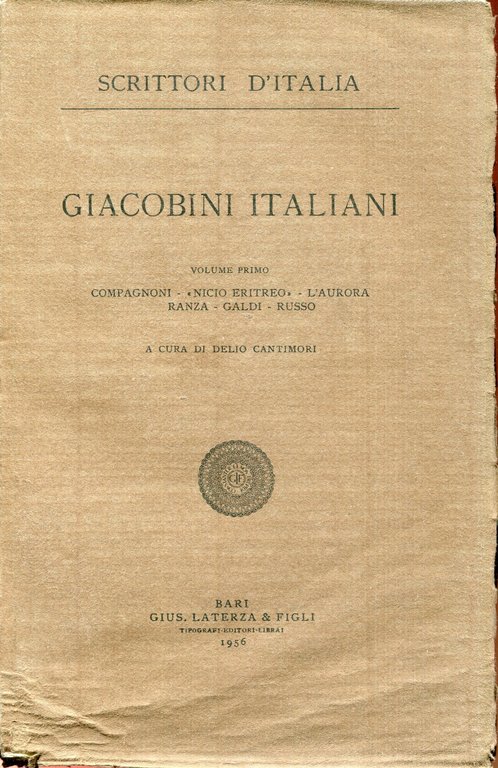 Giacobini italiani : volume primo : Compagnoni - 'Nicio eritreo' - L'aurora -Ranza - Galdi - Russo | Libri antichi e moderni | a cura di Delio Cantinori, ,a cura di Delio Cantinori