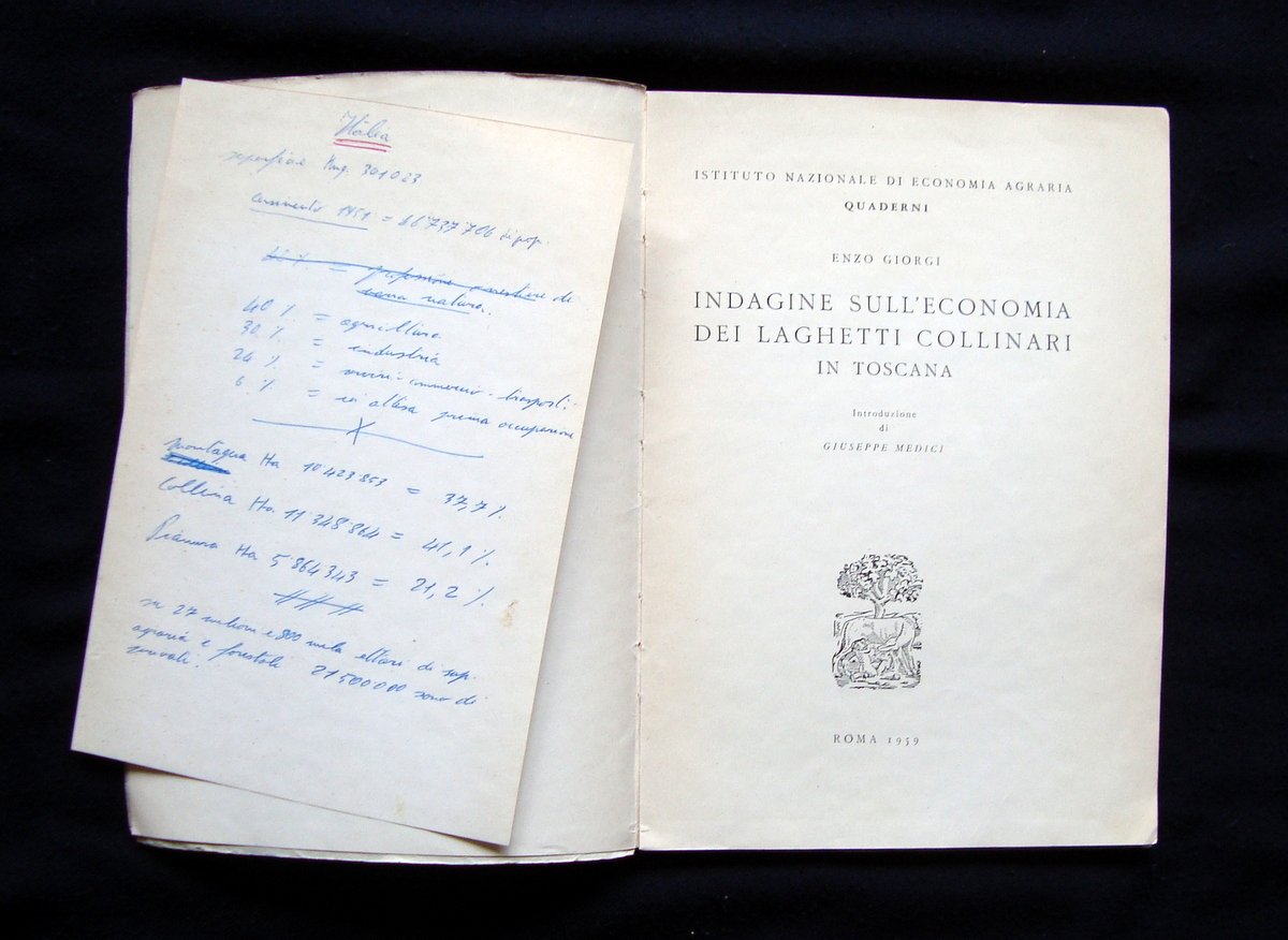 Giorgi Enzo Economia Laghetti Collinari Toscana 1959 Agraria Medici
