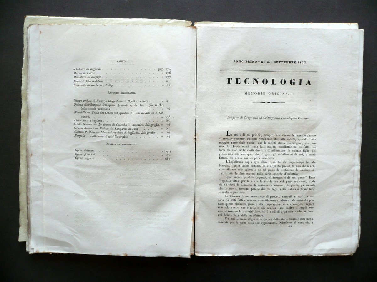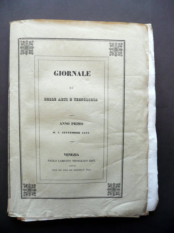 Giornale di Belle Arti e Tecnologia Anno Primo N. 5 Paolo Lampato Venezia 1833 | Libri antichi e moderni |