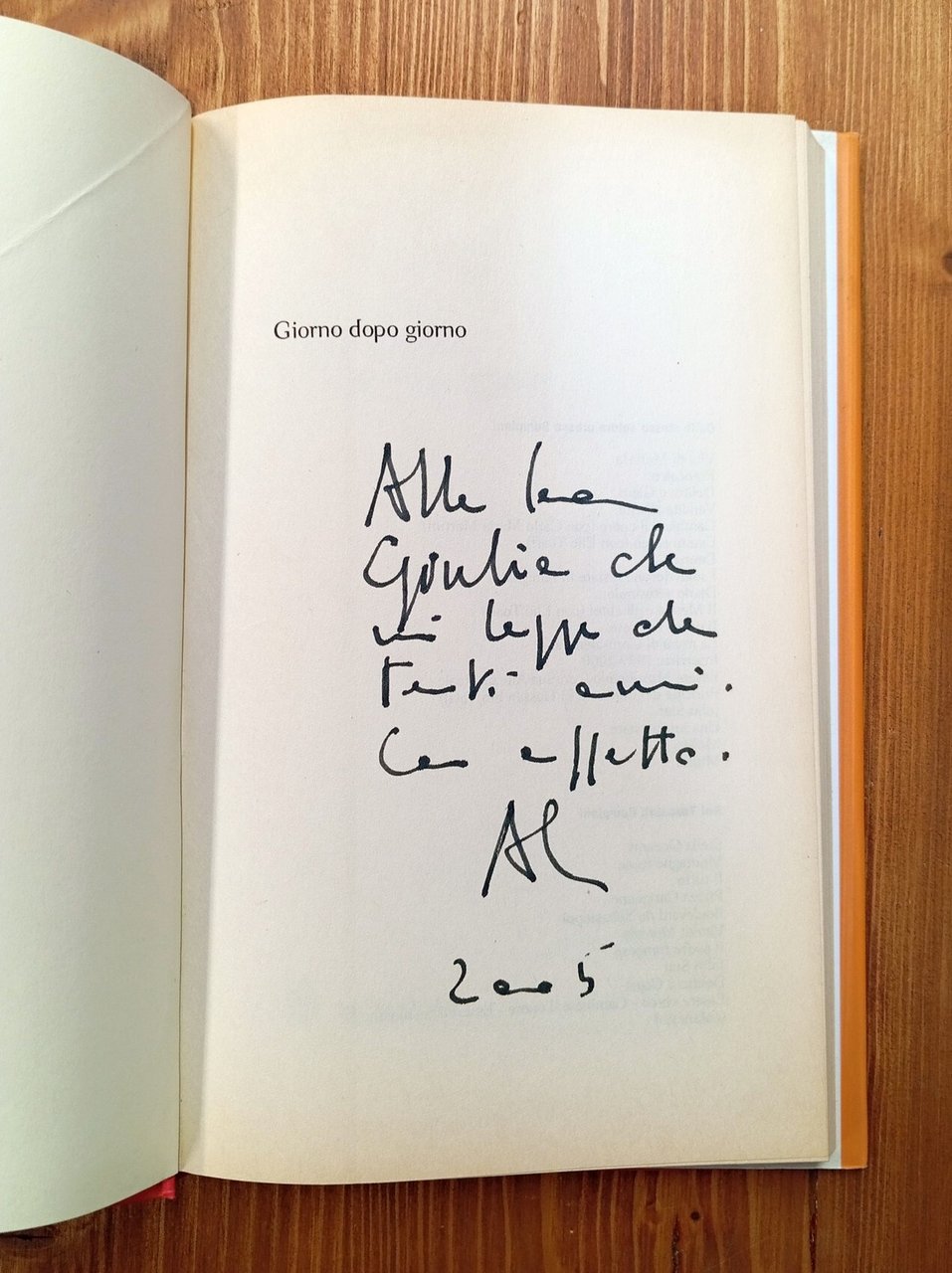 Prima edizione. All'occhietto, dedica autografa dell'Autore a Giulia [Massari, 1924-2015], giornalista vicina al milieu politico e culturale romano dagli anni sessanta in poi - Volume in copertina rigida con sovraccoperta, 157 pagine. Ottima copia -- Persone e libri, viaggi e incontri, eventi mondiali e interiori sono gli spunti di questo diario che svela il lato intimo di uno scrittore, le sue riflessioni sullo tzunami che ha colpito il sud-est asiatico e la commozione di fronte alla via crucis del Papa. Spaziando dalla meditazione sul valore dei sentimenti al mestiere dello scrittore, dall'importanza del dialogo tra le religioni all'impotenza dell'uomo di fronte alla violenza della natura, criticando la spettacolarizzazione dell'Olocausto e interrogandosi sul singolare destino di ebreo vicino al mondo cattolico, Alain Elkann, con uno stile nitido e penetrante, ci racconta il nostro tempo, i suoi drammi, le sue speranze e il suo bisogno di eternità.