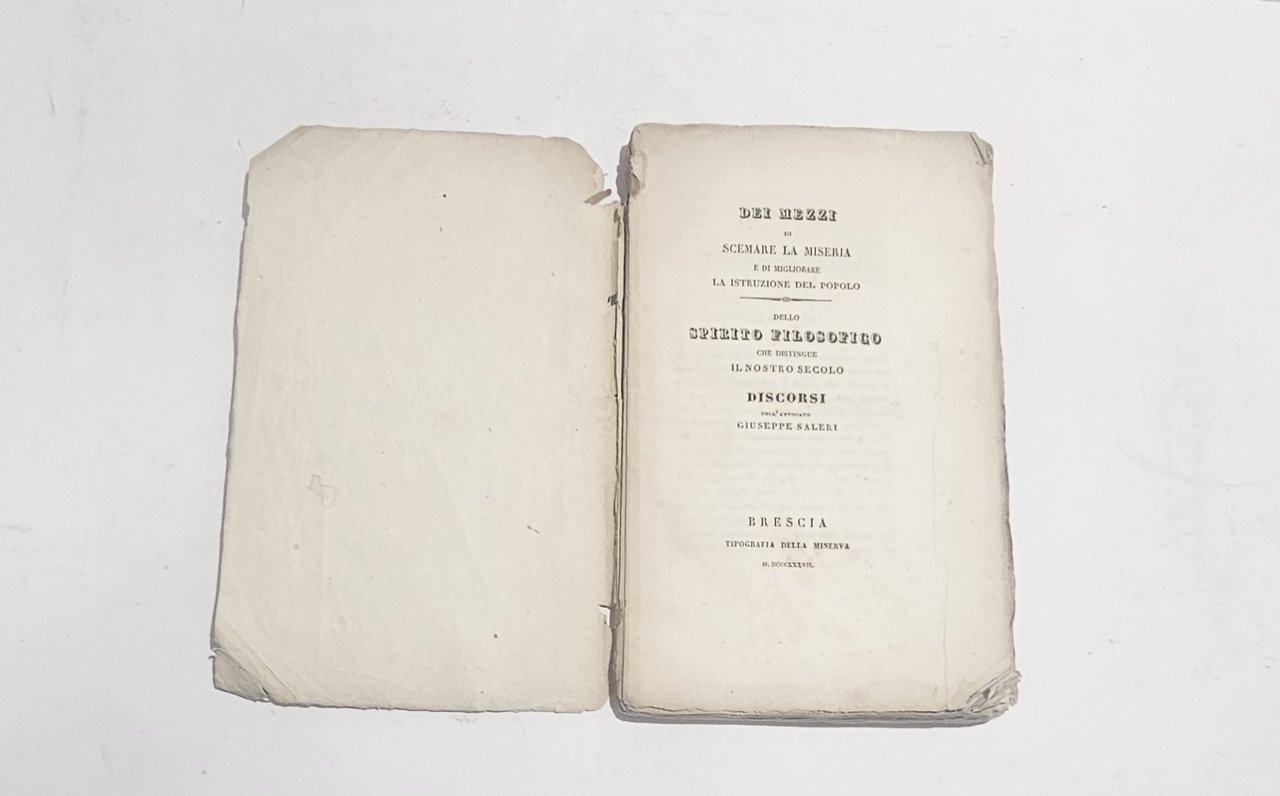 Dei mezzi di scemare la miseria migliorare la istruzione del popolo dello spirito filosofico che distingue il nostro secolo discorsi dell'avvocato Giuseppe Saleri