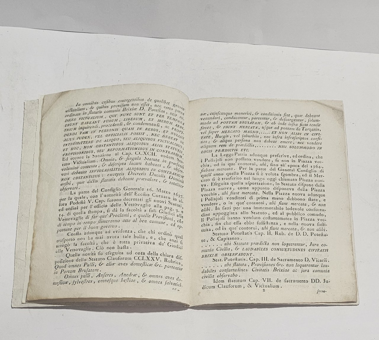 Raro opuscolo settecentesco intitolato “Giustificazione de Giudici alle Vettovaglie di Brescia in proposito del Proclama 26 gennaio 1793”.