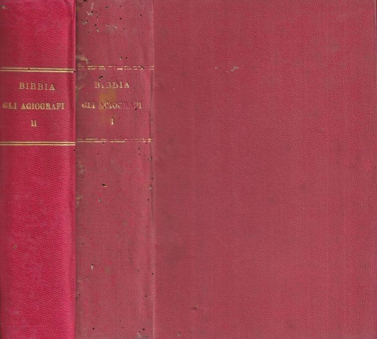 Volume appartenente alla collana La Bibbia. Opera composta da due volumi. Presenti 23 tavole illustrative fuori testo. Legature con titoli e fregi dorati solo al dorso, leggermente macchiata ai piatti e al dorso. Presente qualche segno di usura da insetto nel volume. Pagine salde alla cerniera, con ampio margine, brunite, così come i tagli. Presente fioritura sparsa. Numero pagine 611.