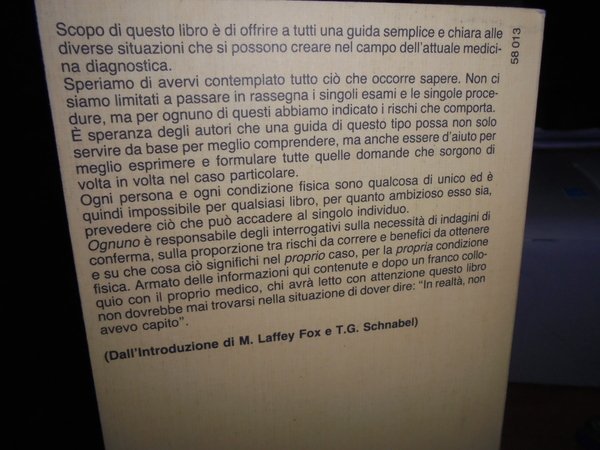 Gli esami clinici . Una guida per il paziente. Scopo di questo libro è di offrire a tutti una guida semplice e chiara alle diverse situazioni che si possono creare nel campo dell' attuale medicina diagnostica. MARION Laafey Fox - Truman G. Schnabel - Feltrinelli, 1982. In-8°, cartoncino edit., 427, (2) pp. In ottimo stato di conservazione. Neg. med. mob. G.