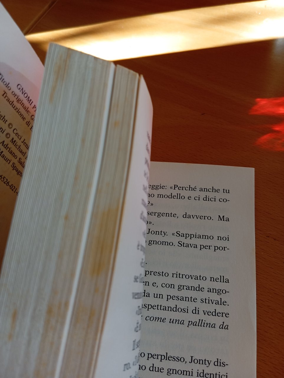 Tagli e pagine fuori testo con macchie e fioriture, come da foto