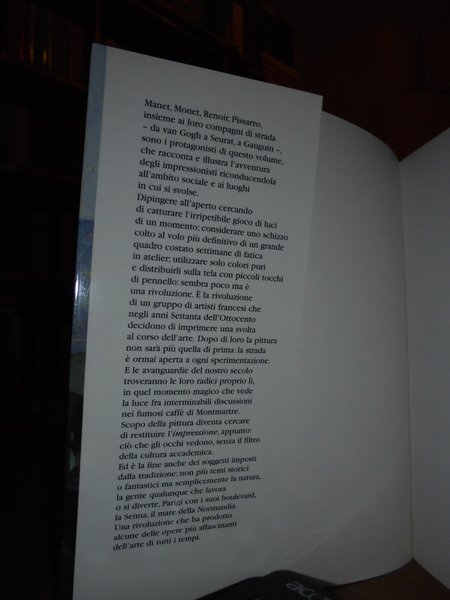 AA.VV. Firenze, Giunti Editore, 1998. Gli Impressionisti. La rivoluzione della pittura moderna nella Parigi del secondo Ottocento. In-8° quadrato, cartoncino edit. con risvolti. 189 pp. con numerose illustrazioni a colori n.t. Come nuovo. Uff. TV. mob. nostro destr. carc.