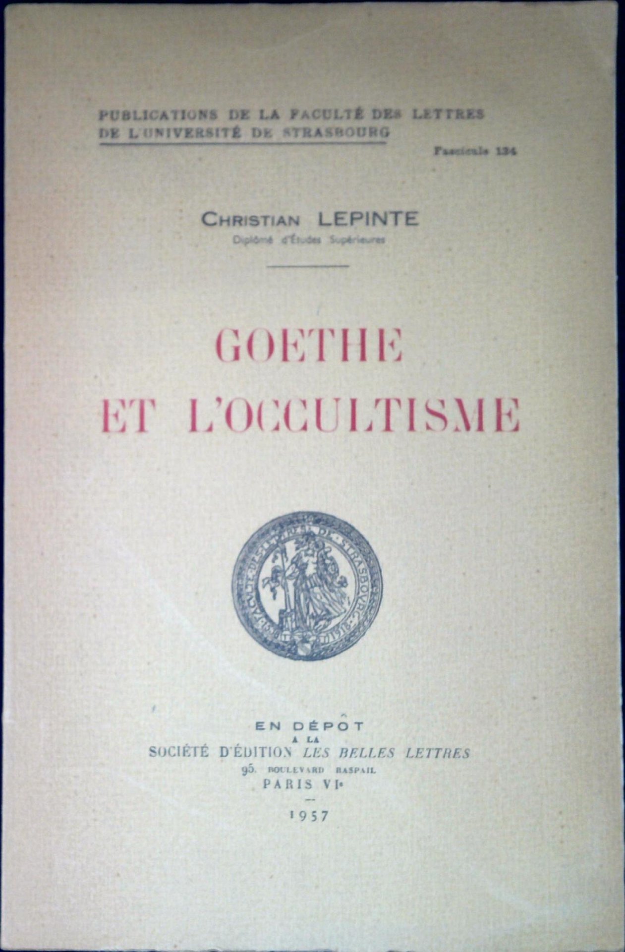 Lepinte, Christian Goethe et l'occultisme. Paris, Les Belles Lettres 1957, XII, 186 p. ; 25 cm. (46966)