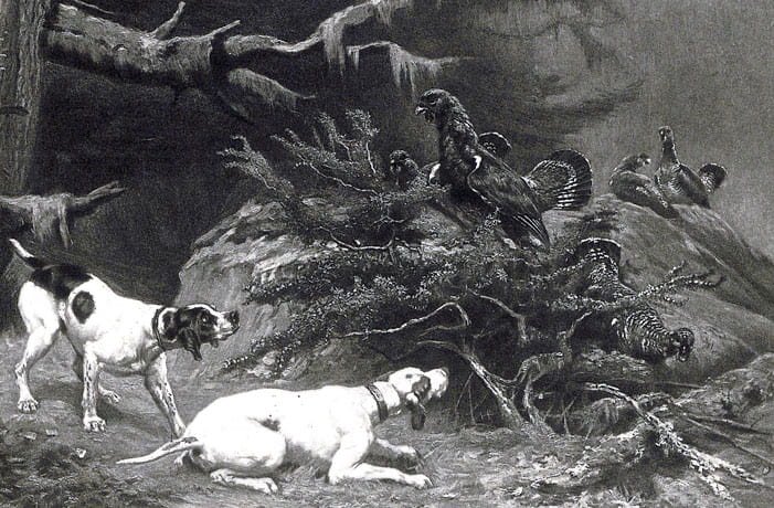 Gravure d'après une peinture de chasse de Jules Gélibert (1834-1916).