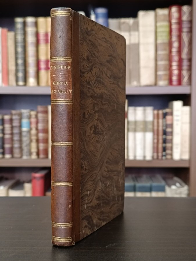 In-8° (cm. 21), legatura coeva in mezza pelle, dorso liscio con titolo in oro su tassello e filetti sempre in oro, piatti marmorizzati, tagli gialli; pp. 192 in stato molto buono; con 48 tavole in rame fuori testo numerate; lievi fioriture sparse. Interessante e non comune opera storica di Pouqueville, importante medico, diplomatico e viaggiatore sotto Napoleone I. L'autore, tra i leader del movimento filellenista in Europa, contribuì attivamente alla rinascita della nazione greca. Volume a se stante che fa parte della collana «L'universo pittorico: ossia storia e descrizione di tutti i popoli delle loro religioni, usi, costumi [.] traduzione dal francese di Girolamo Tacchella». Esemplare molto buono. (NB6)