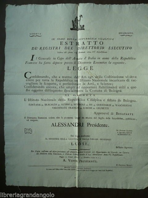 Grida Cisalpina 1797 Davolio Reggio Istituto Scienze Arti Bologna Napoleone