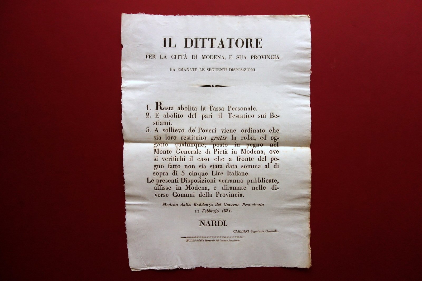 Grida Governo Provvisorio Modena Nardi Abolizione Tassa Personale Testatico 1831