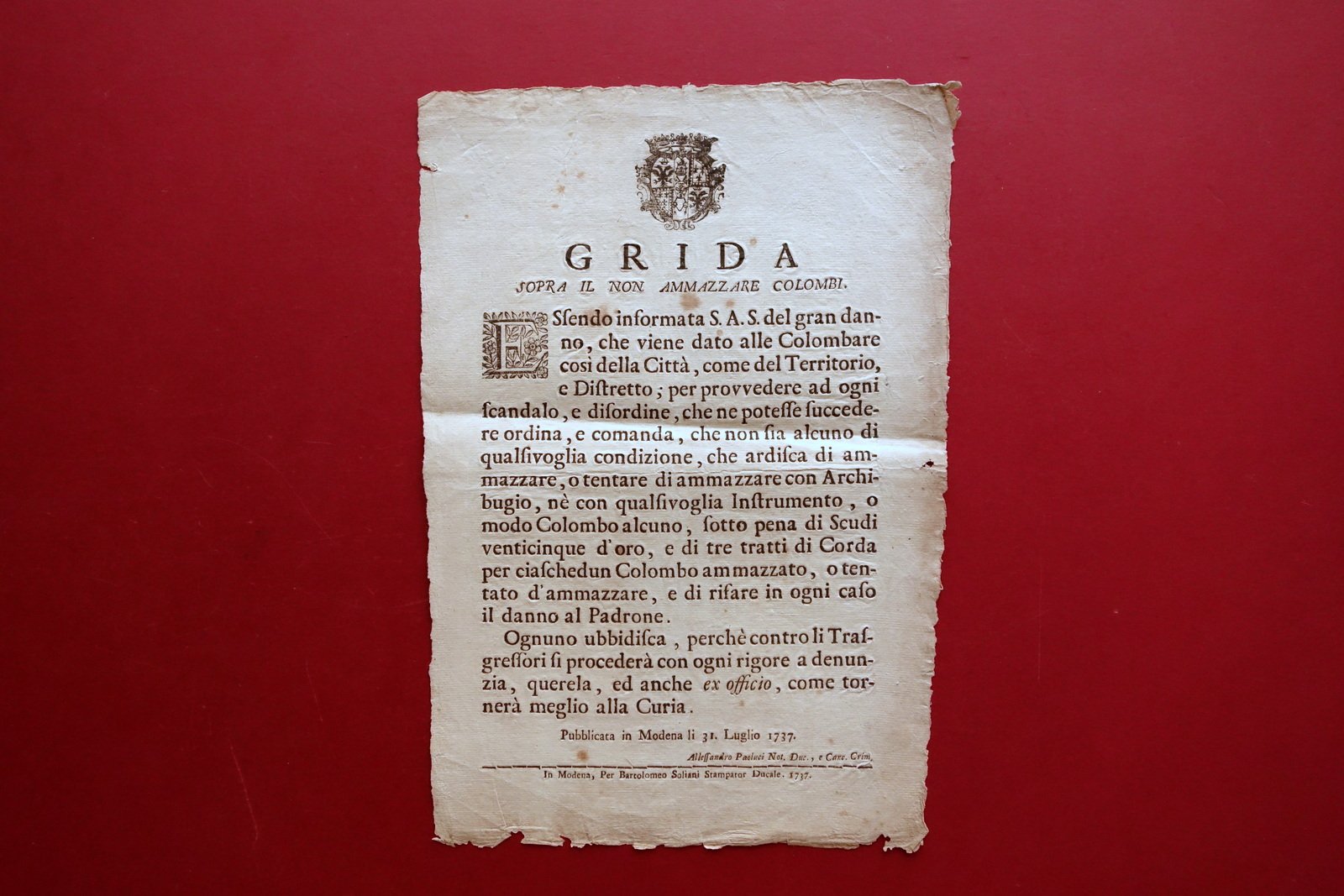 Grida Sopra il non Ammazzare Colombi Soliani Modena 1737 Molto Rara
