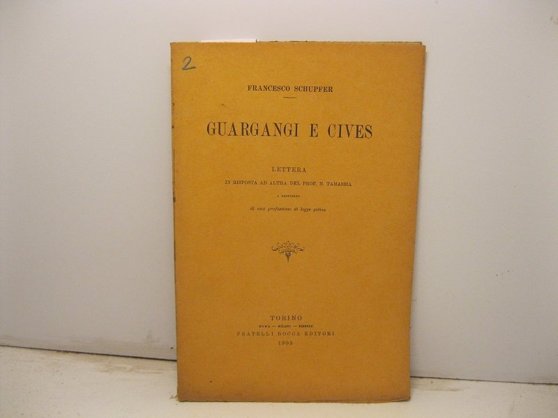 Guargangi e cives. Lettera in risposta ad altra del Prof. N. Tamassia a poroposito di una professione di legge gotica | Libri antichi e moderni | Schupfer Francesco