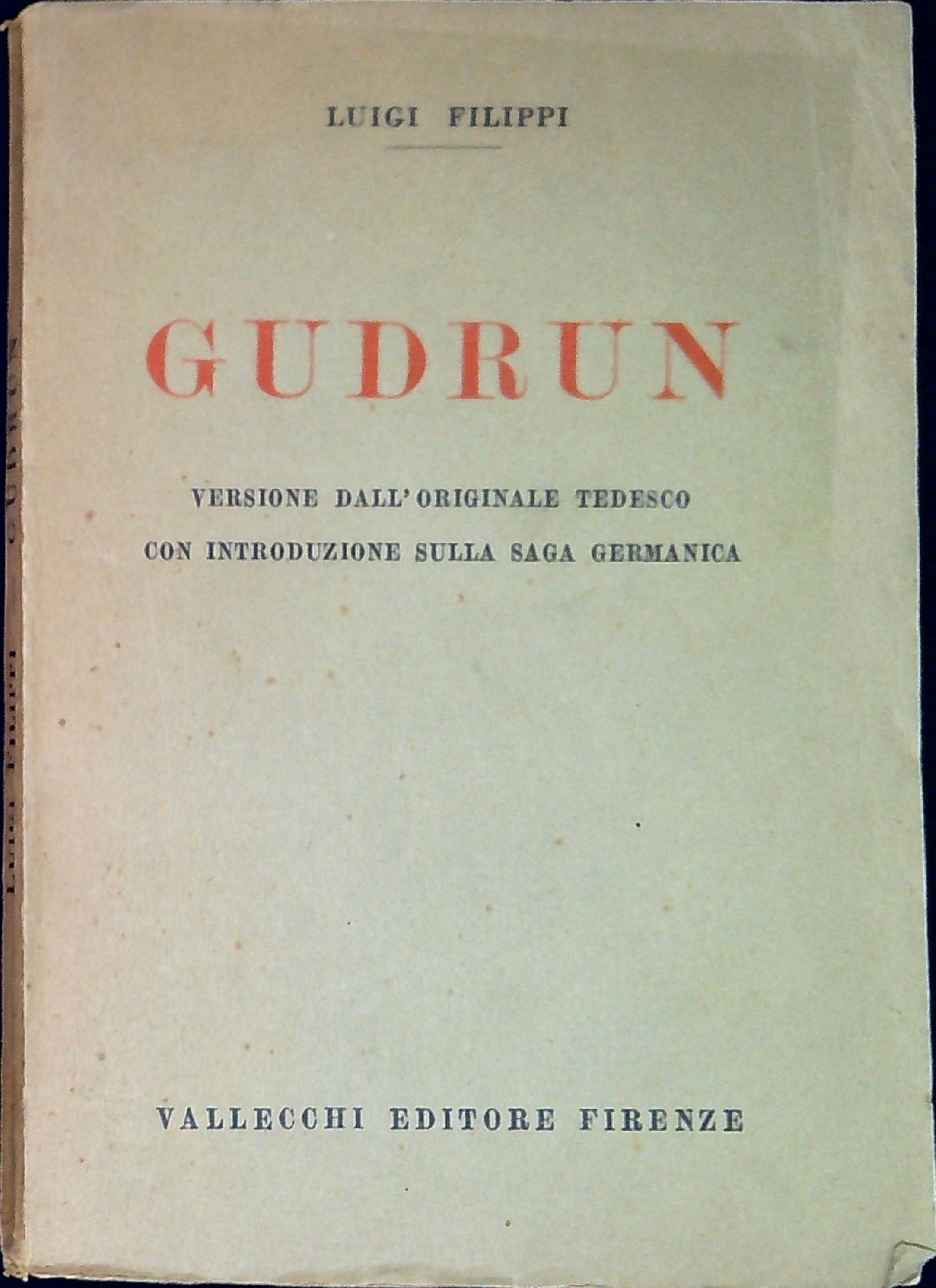 Filippi, Luigi Gudrun. Firenze, A. Vallecchi 1928, 20 122 p. 122 p. ; 20 cm Precede: Ilde. (46715)
