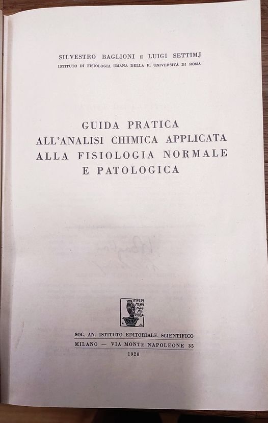 Guida pratica all'analisi chimica applicata alla fisiologia normale e patologica. Legata insiema a: Belli, Carlo Maurizio, Guida alle analisi cliniche di chimica, microscopia, batteriologia e sierologia, Milano : Soc. An. Istituto editoriale scientifico, 1927 | Libri antichi e moderni | Baglioni Silvestro, Settimj Luigi, ,Baglioni Silvestro, Settimj Luigi