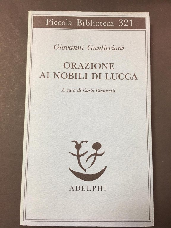 Guidiccioni Giovanni Guidiccioni Giovanni. Orazione ai nobili di Lucca. Adelphi. 1994.. Milano, Adelphi 1994 italiano, in sedicesimo pp.139 27297