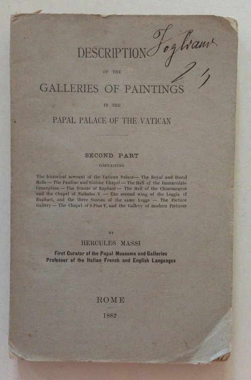 H Massi Description Galleries of Paintings Papal Palace Vatican Second Part 1882 | Libri antichi e moderni |