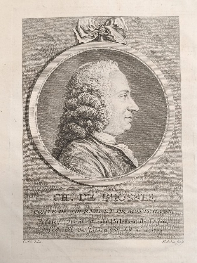 3 volumi in-4° (cm. 28,2), legature coeve in piena pelle marezzata xon piatti inquadrati da triplice filetto in oro, titolo in oro su tasselli e fregi in oro ai dorsi (usure e abrasioni), tagli marmorizzati; pp. [4] LXXXII 646; [4] XIII 676; [4] IV 500 [4] 42 (34) in buono stato e fresche, con 23 tavole incise su rame fuori testo (alcune ripiegate) che raffigurano ritratti di De Brosses, Sallustio e personaggi principali delle sue opere storiche, carte geografiche dei territori interessati dalla narrazione sallustiana e monete romane. Un foro di tarlo alle prime carte del secondo tomo (con fastidio), per altro in ottimo stato; titoli in rosso e nero. Edizione originale della traduzione francese con ricostruzione filologica dei frammenti e delle parti lacunose di Charles De Brosses. Imponente lavoro. Cfr. Quérard VIII, p. 413; Brunet V, 90. Esemplare più che discreto. (SO3)