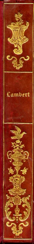In-8°, pp. (6), 412, (4), bella legatura ottocentesca, firmata Brand, in m. pelle rosso vivo con titolo, fregi romantici e firma del legatore in oro al dorso. Piatti marmorizzati policromi, tagli a spruzzo. Sguardie cailloutés marroni. Timbro di appartenenza ottocentesco 'Henri Barbey New York'. Ex-libris moderno. Normali fioriture. Ottimo esemplare. Edizione originale di quest'anonima opera morale il cui autore non è mai stato identificato. Nel 1828 l'Académie Française propose un premio in favore dello scrittore che avesse meglio trattato una questione afferente all'etica, lasciando ai partecipanti piena libertà circa il soggetto ed il modo di affrontarlo. 'L'auteur n'a point été embarrassé sur le choix de son sujet. Sachant que les bonnes et les mauvaises habitudes sont prolifiques de leur nature, il a examiné quelles sont celles qui engendrent le plus d'enfans. Un premier coup d'oeil a suffi pour le convaincre que, de toutes les vertus, il n'en est aucune qui ait des filles plus nombreuses que l'économie domestique'. L'opera, a carattere scopertamente sociale, propugna l'economia domestica e l'istruzione elementare attraverso la storia edifcante del piccolo Michel Lambert, nativo di un piccolo villaggio del Jura, fra i cantoni del Vaud e di Ginevra.