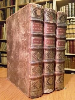 3 volumi in-4° (cm.25,2), legature in p. pelle coeva (tracce d'usura) con titolo e decorazioni in oro ai dorsi, tagli rossi, risguardi marmorizzati; pp. XXVI 579 [37], XIV [2] 644 [26], 655 [25] in buono stato, qualche fioritura e leggera brunitura., mancanza della mappa ripiegata e dell'albero genealogico. Per altro buon esemplare. (SK6)