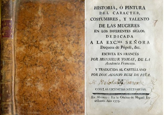 Historia ó Pintura del Carácter, Costumbres y Talento de las Mugeres en los diferentes Siglos. Traducida al castellano por Don Alfonso Ruiz de Piña. | Libri antichi e moderni | Thomas, Antoine Léonard (1732-1785).