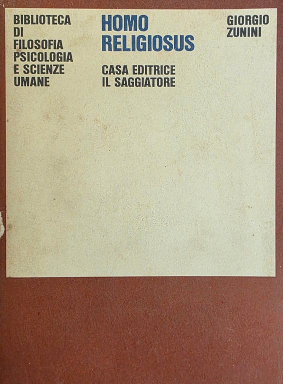 HOMO RELIGIOSUS. CAPITOLI DI PSICOLOGIA DELLA RELIGIOSITÀ | Libri antichi e moderni | ZUNINI GIORGIO, ,ZUNINI GIORGIO
