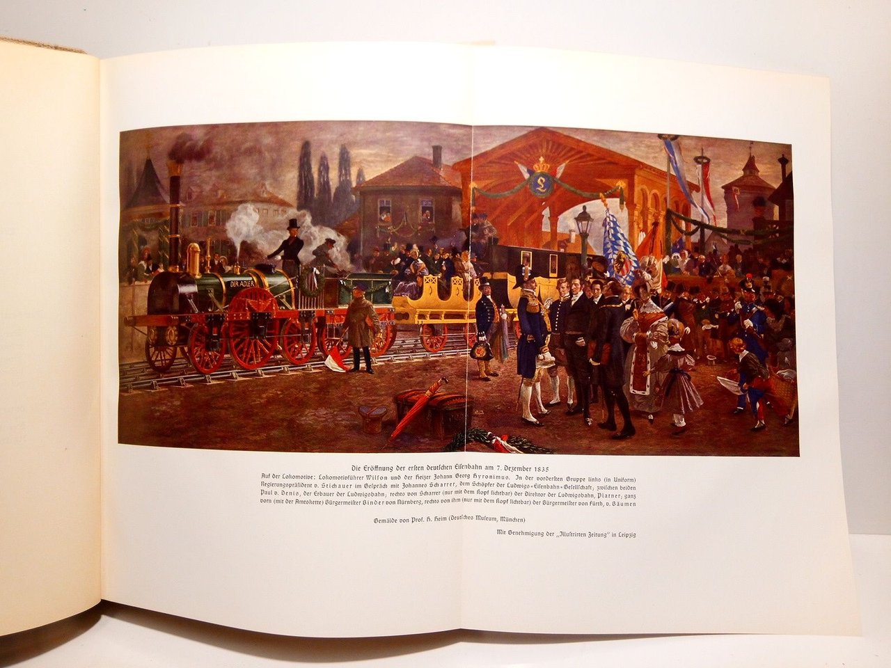 Leipzig: Verkehrswissenschaftliche Lehrmittelgesellschaft, 1938.- 569 p.: Profusión de láminas en negro y varias a todo color impresas por por una sola cara, mapas y al final encartados en la tapa posterior 3 grandes mapas plegados con las lineas ferroviarias alemanas; 4º mayor (28,5 x 22,5 cm.); Texto en alemán; Buena impresión en letra gótica; Tela Ed.- Un libro magnífico sobre la historia del ferrocarril en Alemania. Excelente estado. FERROCARRILES, TRANSPORTES, RED VIARIA Y OBRAS PÚBLICAS EN GENERAL