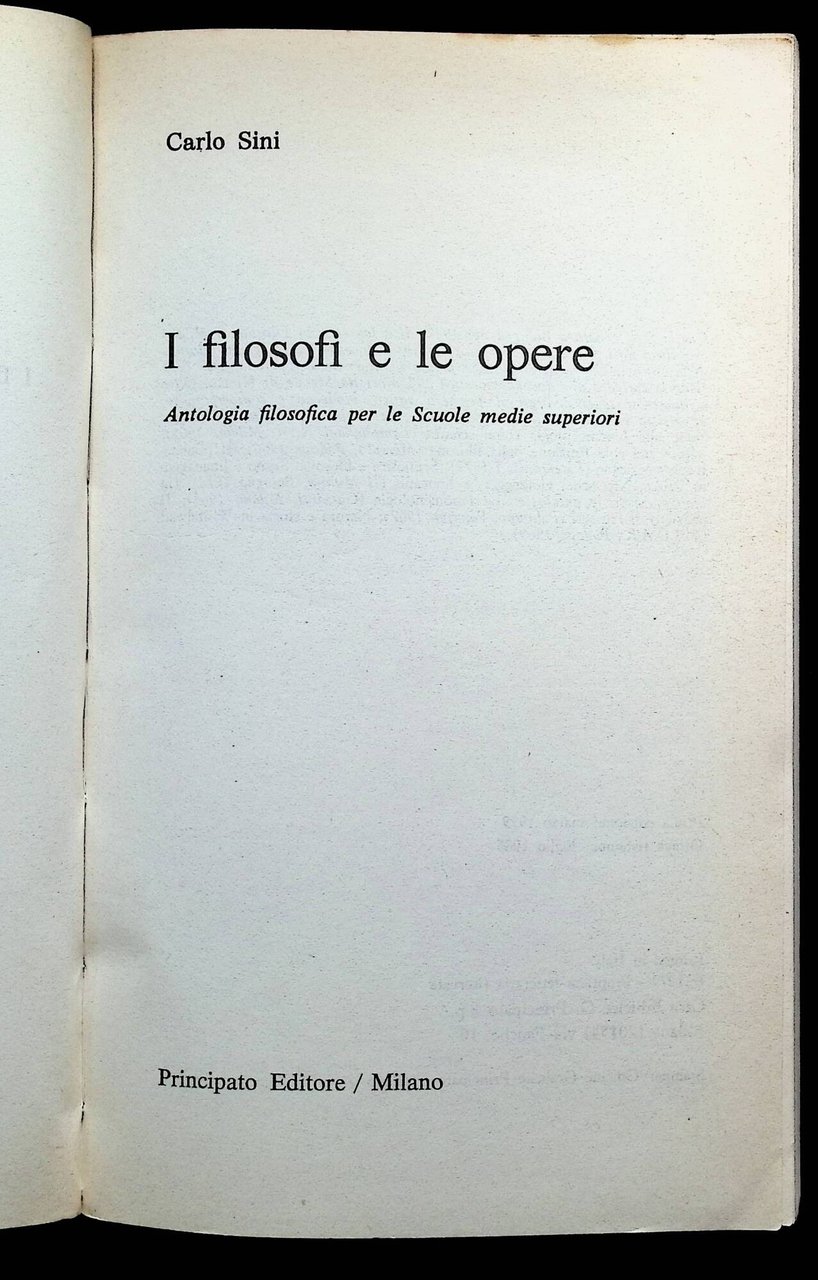 I Filosofi e le Opere. Antologia Filosofica per le Scuole Medie e Superiori | Libri antichi e moderni | Sini, Carlo