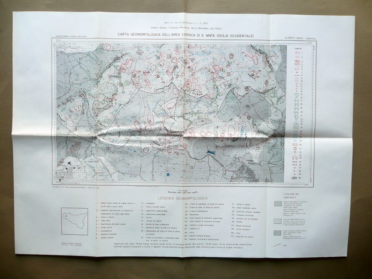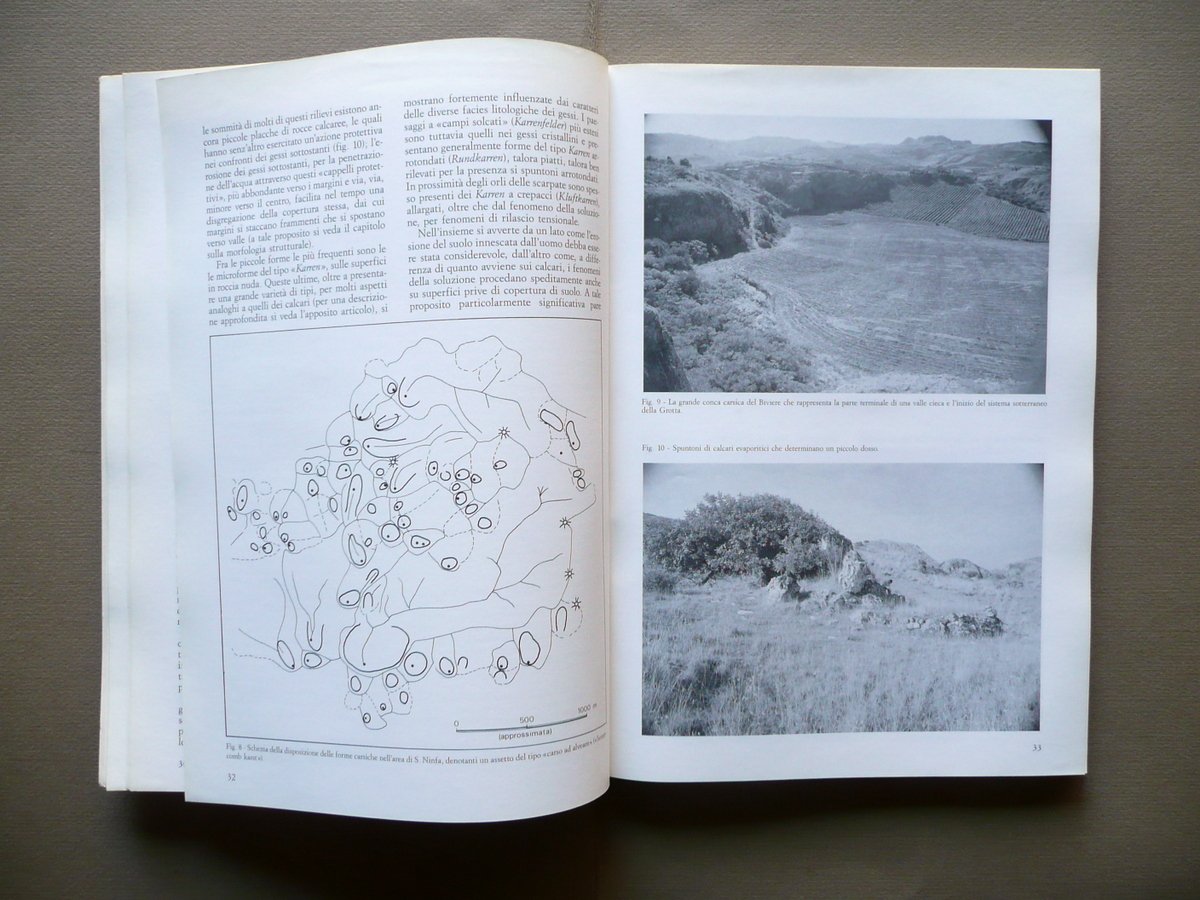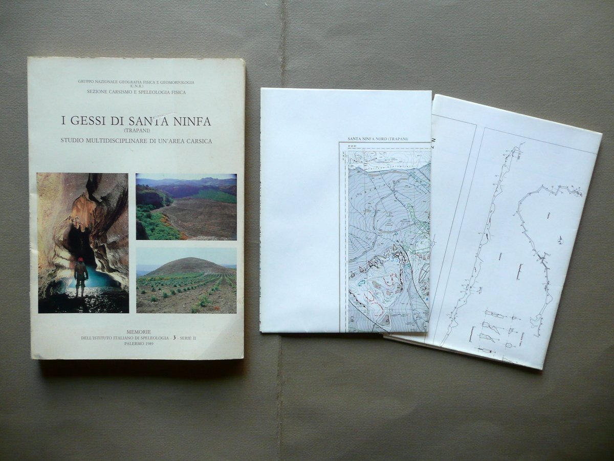 AA. VV., Gruppo Nazionale Geografia Fisica e Geomorfologica (C.N.R.) Sezione Carsismo e Speleologia Fisica - I gessi di Santa Ninfa (Trapani) Studio multidisciplinare di un'area carsica Memorie dell'Istituto Italiano di Speleologia, Palermo 1989; cm 29,5x21; pp. 204 con numerose ill. in b/n nel t. e fuori t. (qualcuna a col.); accluse due carte in b/n rip. pi√π volte entro tasca applicata alla terza di copertina (una presenta dettagli a colori). Brossura ed. ill. a colori. Preve un breve abstract in inglese al termine del volume. Condizioni di conservazione Esemplare in buone condizioni con tracce d'uso, brossure con poche piccole abrasioni e minime leggerissime tracce di sporco. Interni ottimi. SETT139.L13445 N