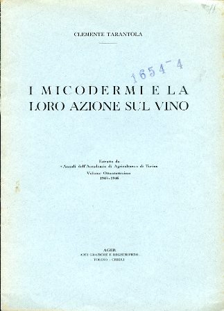 I micodermi e la loro azione sul vino. Estratto da 'Annali dell'Accademia di Agricoltura' di Torino. Volume ottantottesimo. 1945 - 1945 | Libri antichi e moderni | Tarantola Clemente