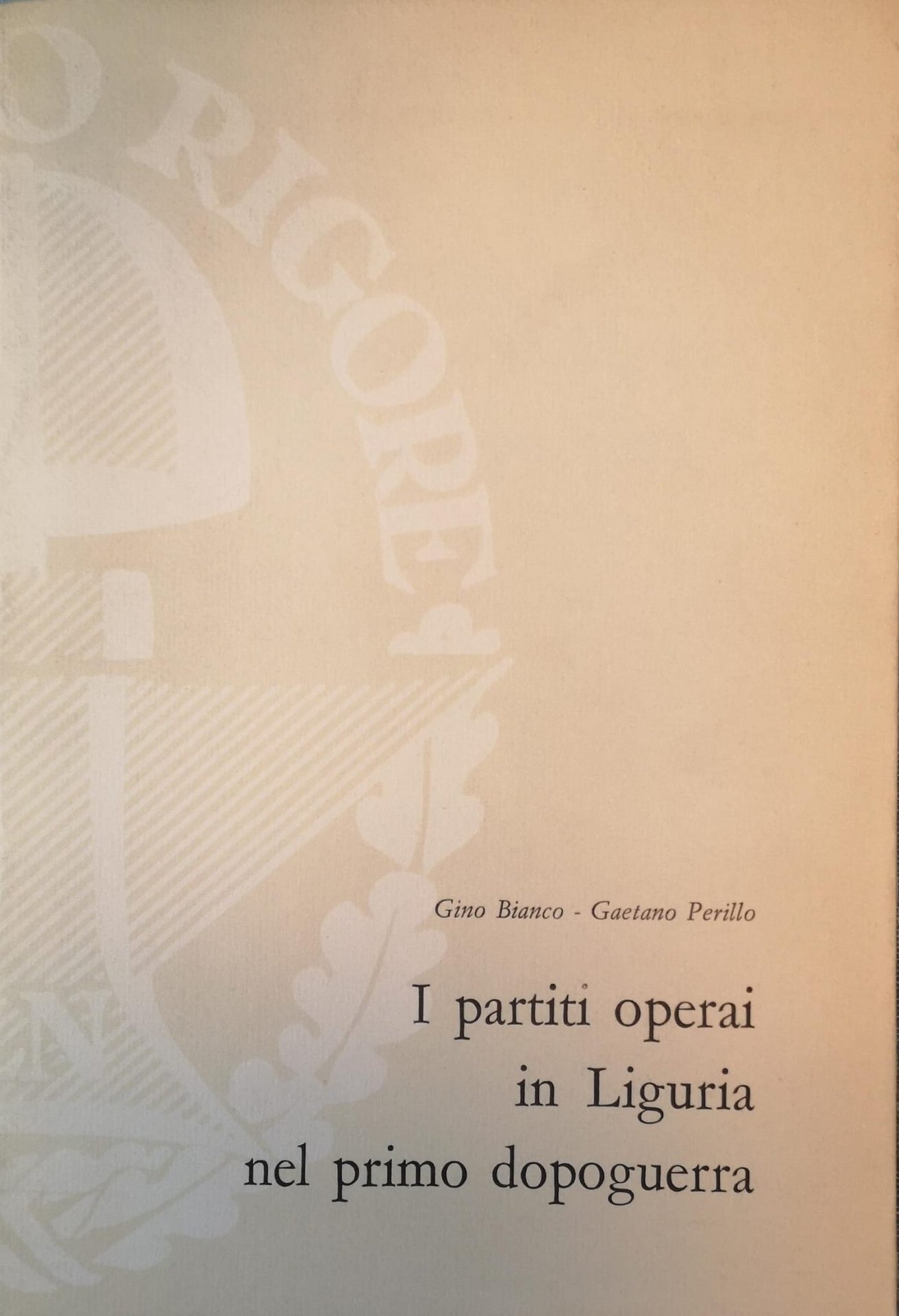 I PARTITI OPERAI IN LIGURIA NEL PRIMO DOPOGUERRA. | Libri antichi e moderni | BIANCO Gino