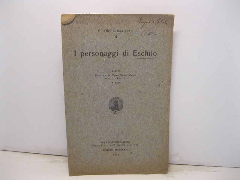 I personaggi di Eschilo. Estratto dalla Nuova Rivista Storica, anno II, fasc. III | Libri antichi e moderni | Romagnoli Ettore