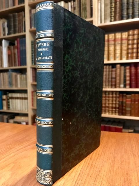 2 volumi in 1 in-8° (cm. 22,8), legatura coeva in m. pelle verde, titolo e decorazioni in oro al dorso con nervi, piatti e risguardi marmorizzati; pp. [4] 281 [3], 307 [5] in ottimo stato e freschissime. Edizione originale di questo dramma storico diviso in tre atti. Cfr. Parenti 427; Olschki Choix XIII, 21631. Ottimo esemplare. (NH5)
