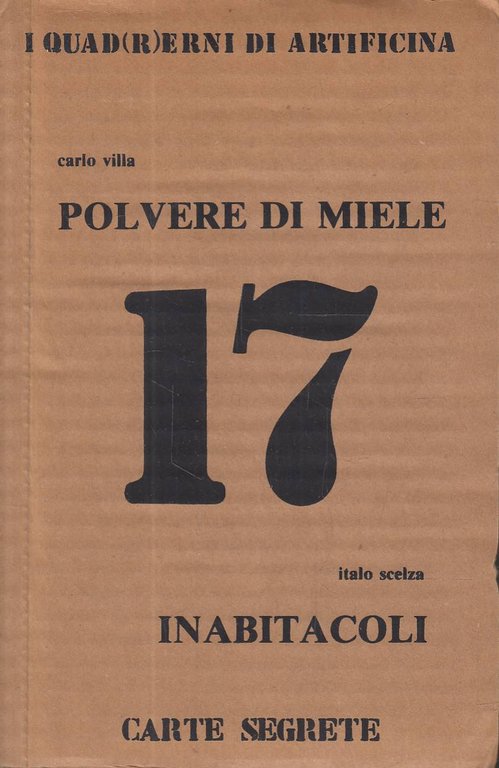 Brossura con copertina in cartone ondulato, 13,5x21 cm, pg. n.n. con alcune illustrazioni a colori. Poesie di Carlo Villa (Polvere di miele) con illustrazioni di Italo Scelza (Inabitacoli). Dedica e firma autografe dell'Autore. Ottimo.