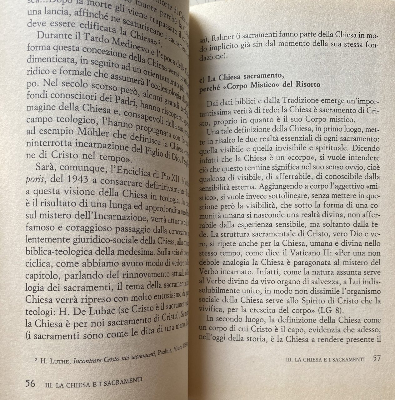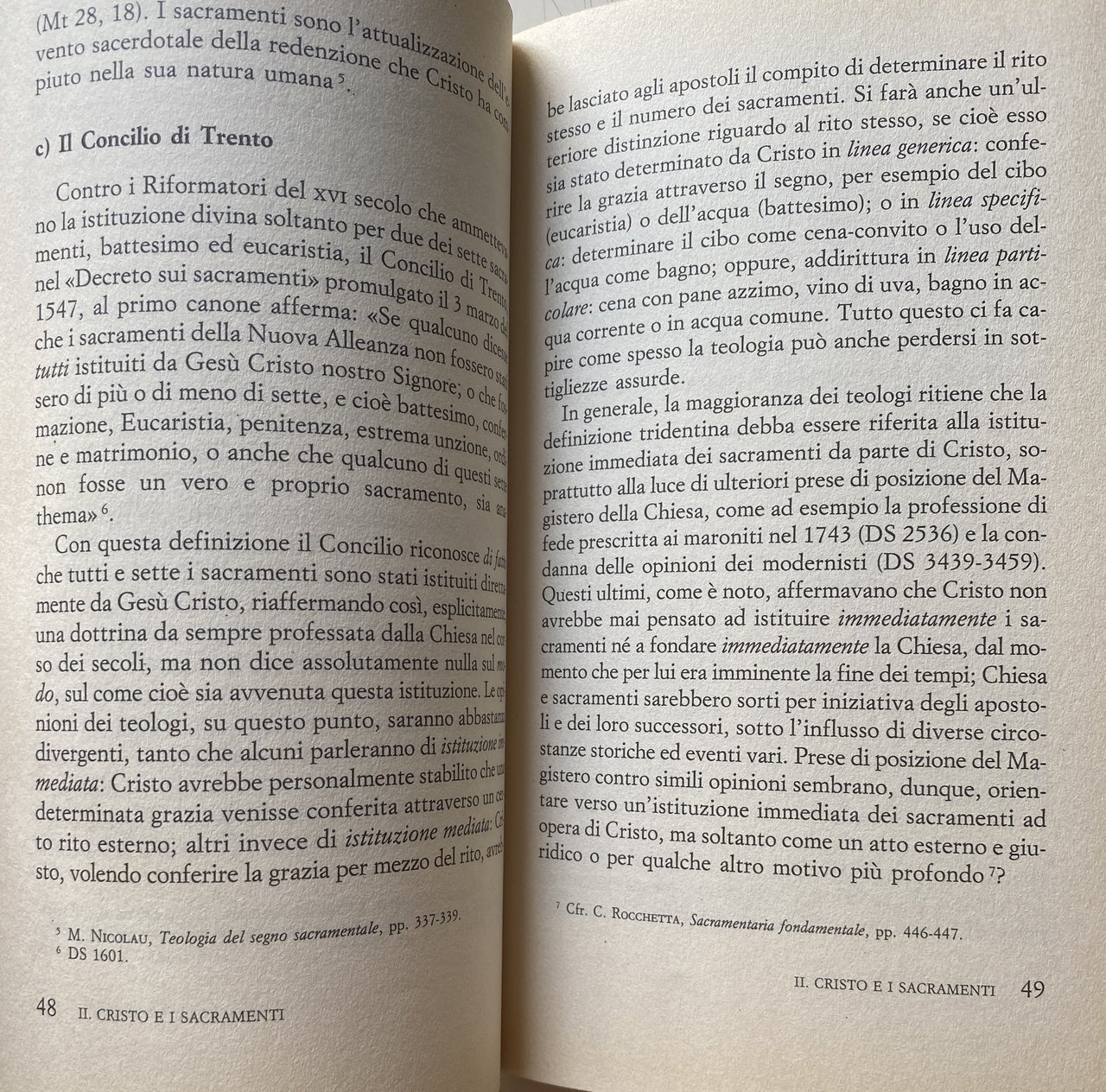 INTRODUZIONE. Di che cosa si occupa la teologia dei sacramenti? Uno dei maggiori teologi contemporanei, Karl Rahner, ponendosi anch'egli la stessa domanda, risponde elencando i seguenti temi: 1 origine cristica dei sacramenti, in che senso cioè i sacramenti sono stati istituiti da Gesù Cristo; 2 il rapporto tra i singoli sacramenti, segni del mistero di Cristo, sacramento originario, con la Chiesa, sacramento universale; 3 il modo in cui i sacramenti conferiscono all'uomo la grazia che essi significano (causalità dei sacramenti). Questi tre principali argomenti, però, non costituiscono tutta la teologia sacramentaria, di solito infatti essi vengono affrontati dai trattati in quella prima parte che va sotto il nome di De sacramentis in genere, e che altro non è che una riflessione generale sugli aspetti comuni a tutti i sacramenti meglio conosciuta come Sacramentaria Fondamentale. ...